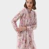 The knee-length tunic dress with half sleeves, a flat stand-up collar, and made from yarn-dyed linen offers a casual look. Yarn-dyed linen is dyed before weaving the fabric, creating a melange effect in combination with white yarn. The dress features pleats on both sides next to the placket, side seam pockets, and is garment washed for a relaxed appearance. It is closed with mother-of-pearl buttons.