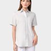 The shirt blouse with a loose fit and dropped shoulders is a trendy and comfortable piece of clothing. The plain cotton poplin material ensures a comfortable fit and a light texture. The long sleeves and the concealed button placket give the blouse a modern look. The pleated stand-up collar is a special detail and can be removed if necessary by opening the zipper. This makes it possible to adjust the look of the blouse depending on the occasion and mood. The shirt blouse is perfect for casual or formal outfits and gives you a relaxed yet stylish appearance.