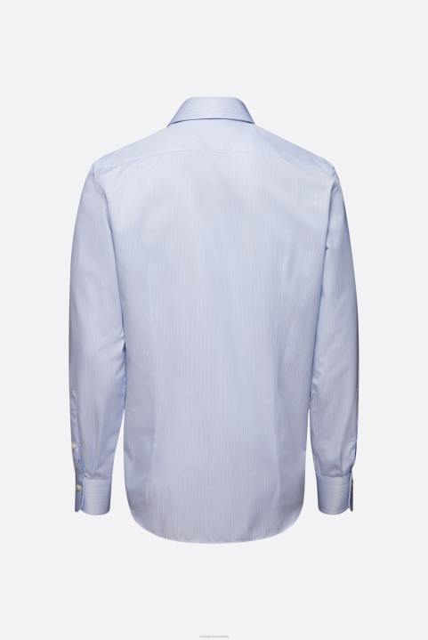 The striped twill shirt is made from a very fine pinstripe twill. The fabric comes from an Italian supplier. The sartorial workmanship is characterized by the rounded masterpiece cuff with a button, a special split yoke for increased comfort, hand stitch Shoulder seams and hand-sewn delicate van Laack leg corners.