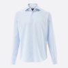The Perfect Look shirt stands out with its easy-care and wrinkle-resistant properties, additionally smoothing out with body heat. The fabric is sourced from a supplier in Italy. The shirt features a moderate shark collar, a classic cuff with the distinctive van Laack flair, unique van Laack corner stitches, and a smooth button placket. The high-quality shirt craftsmanship includes internal and side seams, hand-knotted seams, and mother-of-pearl buttons. Ideal for business occasions and as a traveler shirt.