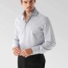 The wrinkle free business shirt made of Cotton and Lyocell Natte with a houndstooth pattern in Comfort Fit combines style and functionality for a well-groomed business appearance. The shirt is made from a Natte structure with a mini houndstooth pattern and is special thanks to the addition of Lyocell soft. Thanks to the “”Perfect Look”” workmanship, the shirt hardly creases and can be worn without much ironing, and the product is also smoothed by body heat. The shark collar, the classic cuff with the characteristic van Laack curve and the specially sewn van Laack corners give the shirt an elegant touch. It has a smooth button placket and a practical chest pocket. The high-quality workmanship of the shirt includes inner seams, side seams, hand-knotted seams and mother-of-pearl buttons, making it ideal for business occasions and as a travel shirt.